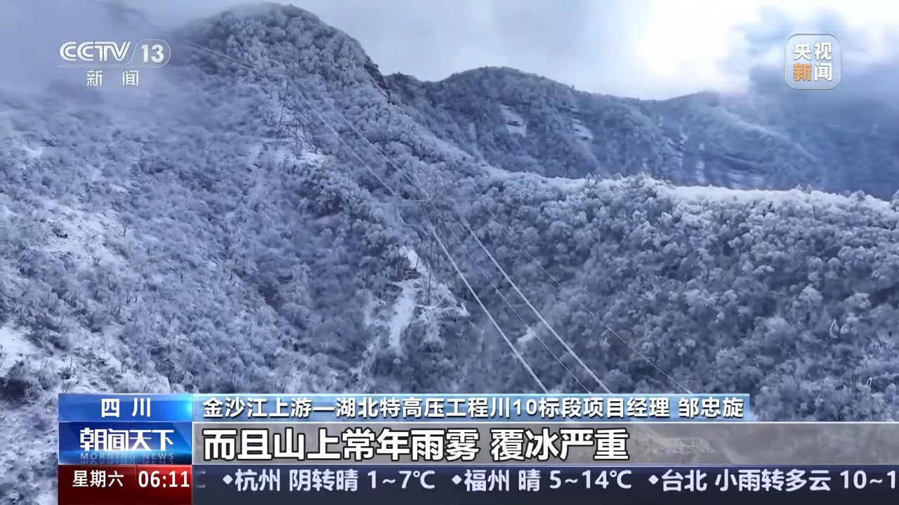 金沙江上游—湖北特高压工程川10标段项目经理邹忠旋:我们川10标段全长大概36.5公里,其中就包含了21公里的原始森林无人区区段,而且山上雨雾频繁、容易覆冰。