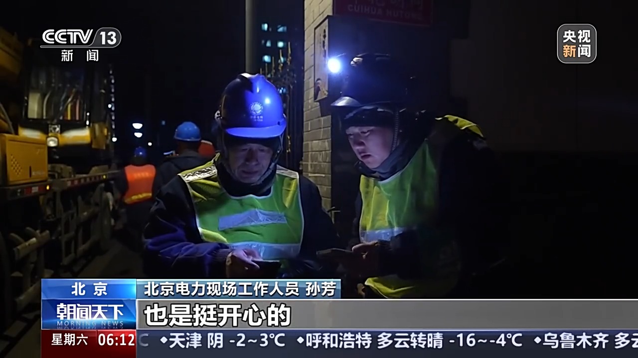 北京电力现场工作人员孙芳:虽然我们都在晚上施工,能让老百姓有更稳定的供电,也是挺开心的。