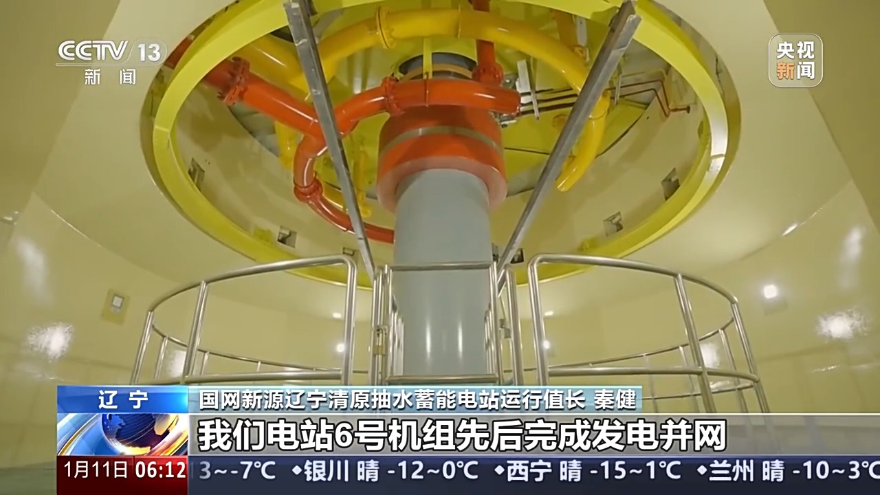 国网新源辽宁清原抽水蓄能电站运行值长秦健:我们电站6号机组先后完成发电并网、抽水并网等全部启动试验及涉网试验,机组稳定性优良。6号机组计划于1月15日完成试运行,电站将随之全面投产发电。