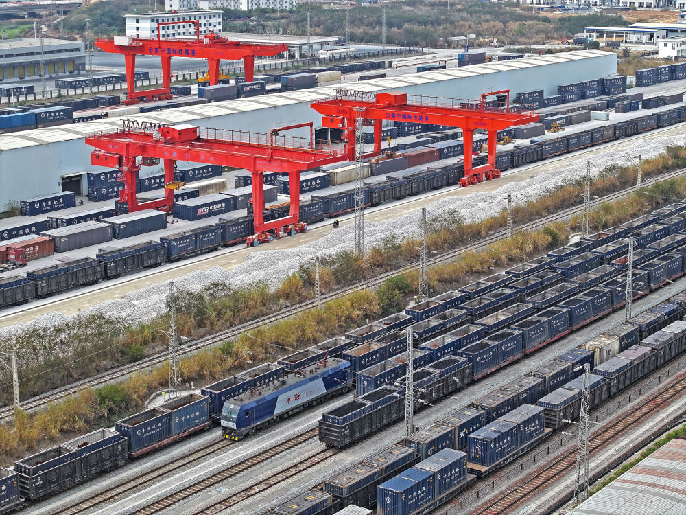 1月15日,中越年货班列在南宁国际铁路港整装待发。新华社发