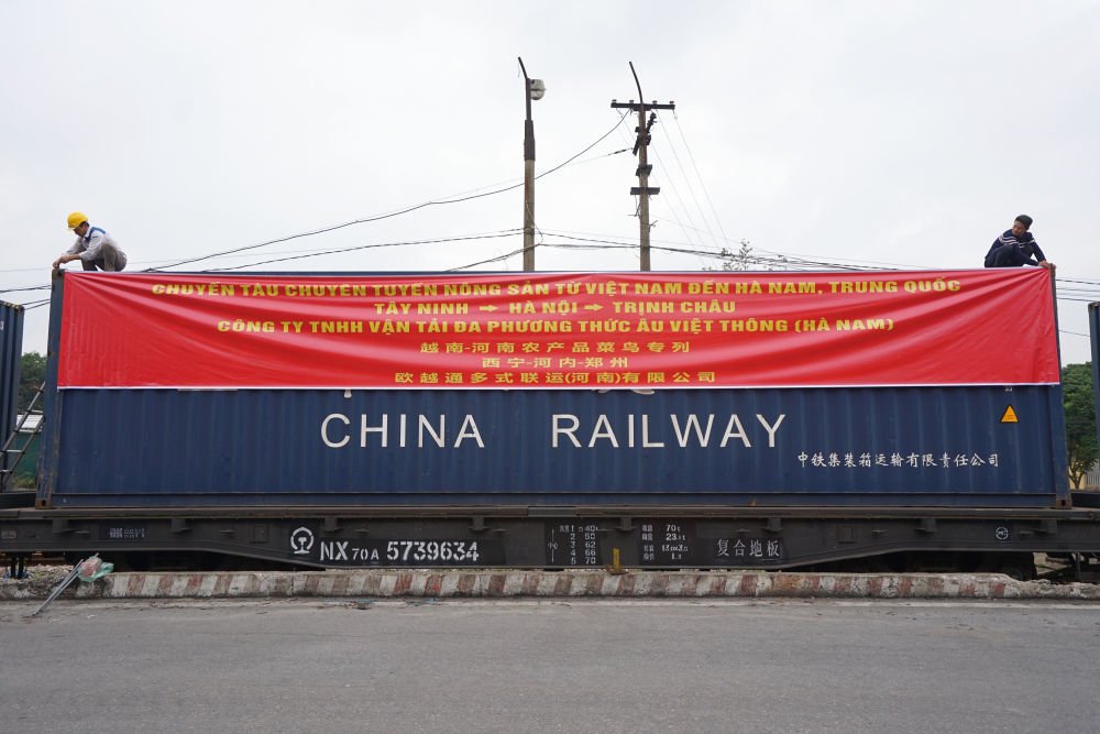2024年1月15日,载有1000吨木薯淀粉的中越班列列车从越南河内启程,驶向中国郑州。新华社记者 胡佳丽 摄