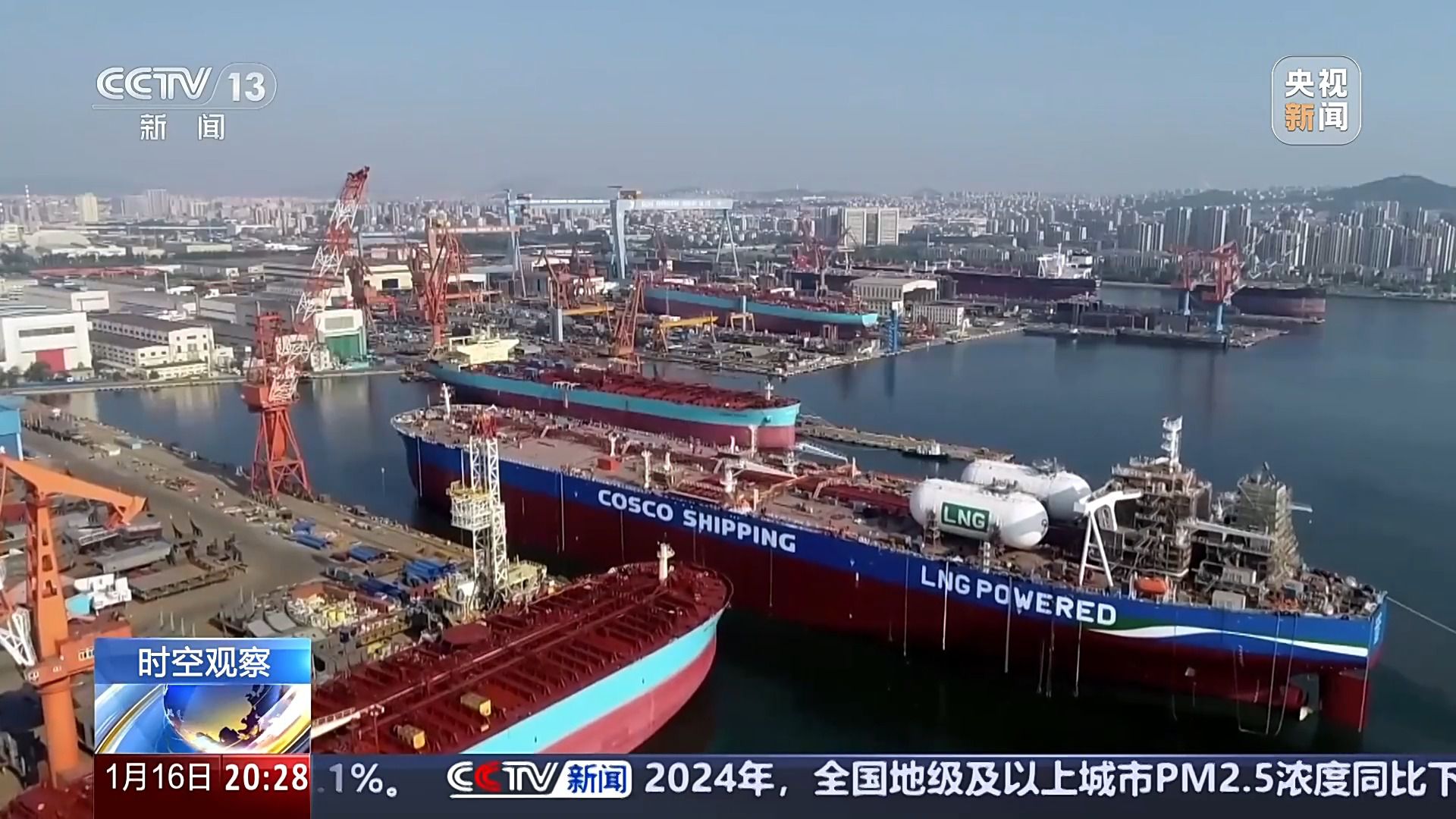 上海长兴岛是我国最重要的造船基地之一,被称为“造船岛”,在过去一年,这里的外高桥造船、江南造船和沪东中华造船三大造船厂几乎平均五天就要交付一艘新船。这是全球首艘第五代大型LNG运输船,它代表了当今世界大型LNG运输船领域的最高技术水平;这是全球首艘230万桶通用型海上浮式生产储卸油船,它的交付,也让上海外高桥造船成为中国第一家完工总量突破1亿载重吨大关的船企。这是全球装载量最大的LNG绿色动力汽车运输船,一次可运送7800辆汽车,具有排放清洁度高、油耗低、盈利能力强等诸多特点。最新数据显示,上海三大船企2024年累计交船69艘,新接订单128艘,同比增长19%和70%。其中,中高端船型达到98%以上,实现效率效益双增长。