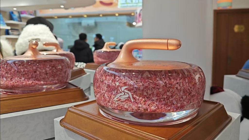 店员张张(化名)介绍,吉祥物背包的卡通形象十分可爱,适合学龄儿童,很受欢迎。还有一款“碎钞冰壶”销量很好,冰壶外壳透明,内部由作废的碎钞填充,寓意手握“钱”程、“碎碎”平安。