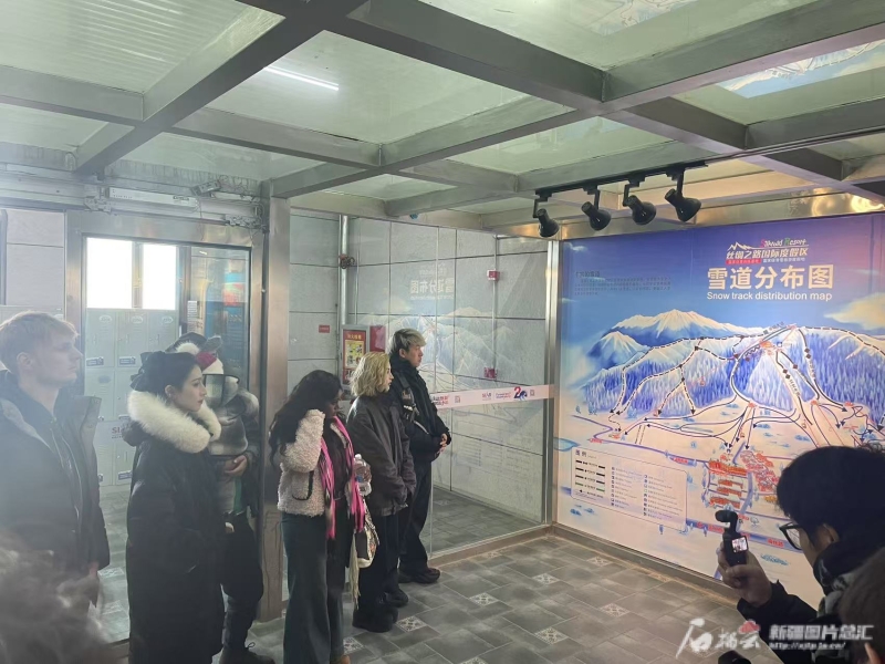 中外博主走进丝绸之路山地度假区感受冰雪魅力。石榴云/新疆日报记者 姚刚摄