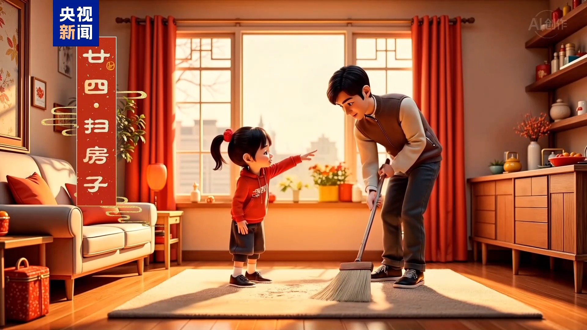 “二十四,扫房子”。新春将至,全家老小齐动手,把家里打扫得窗明几净,寓意着扫去晦气,以全新的面貌迎接新年。