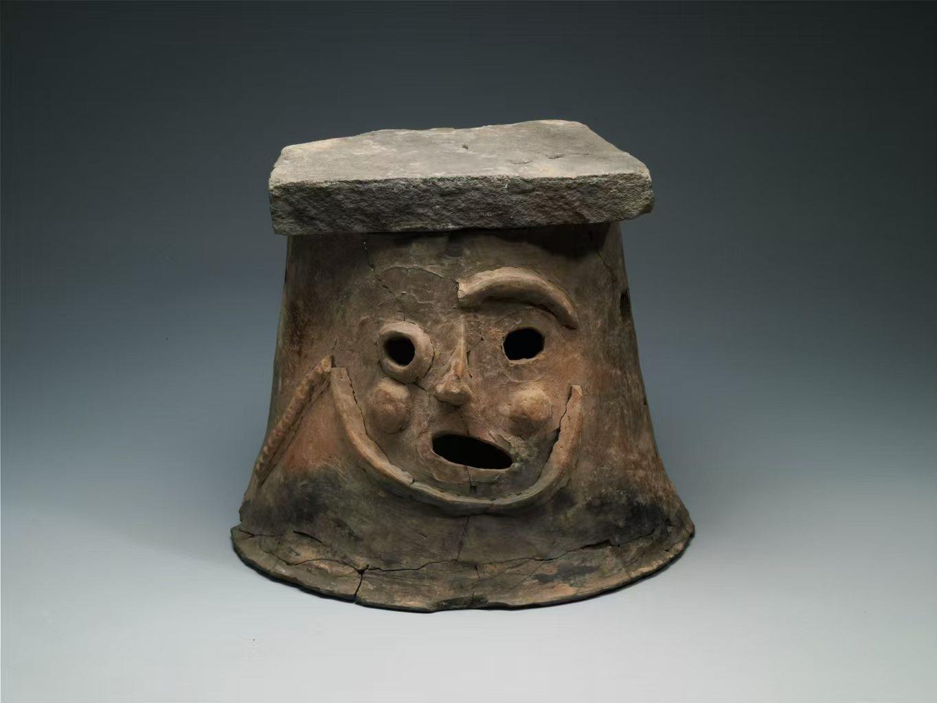 “陶人面筒形器”顶部盖一石板