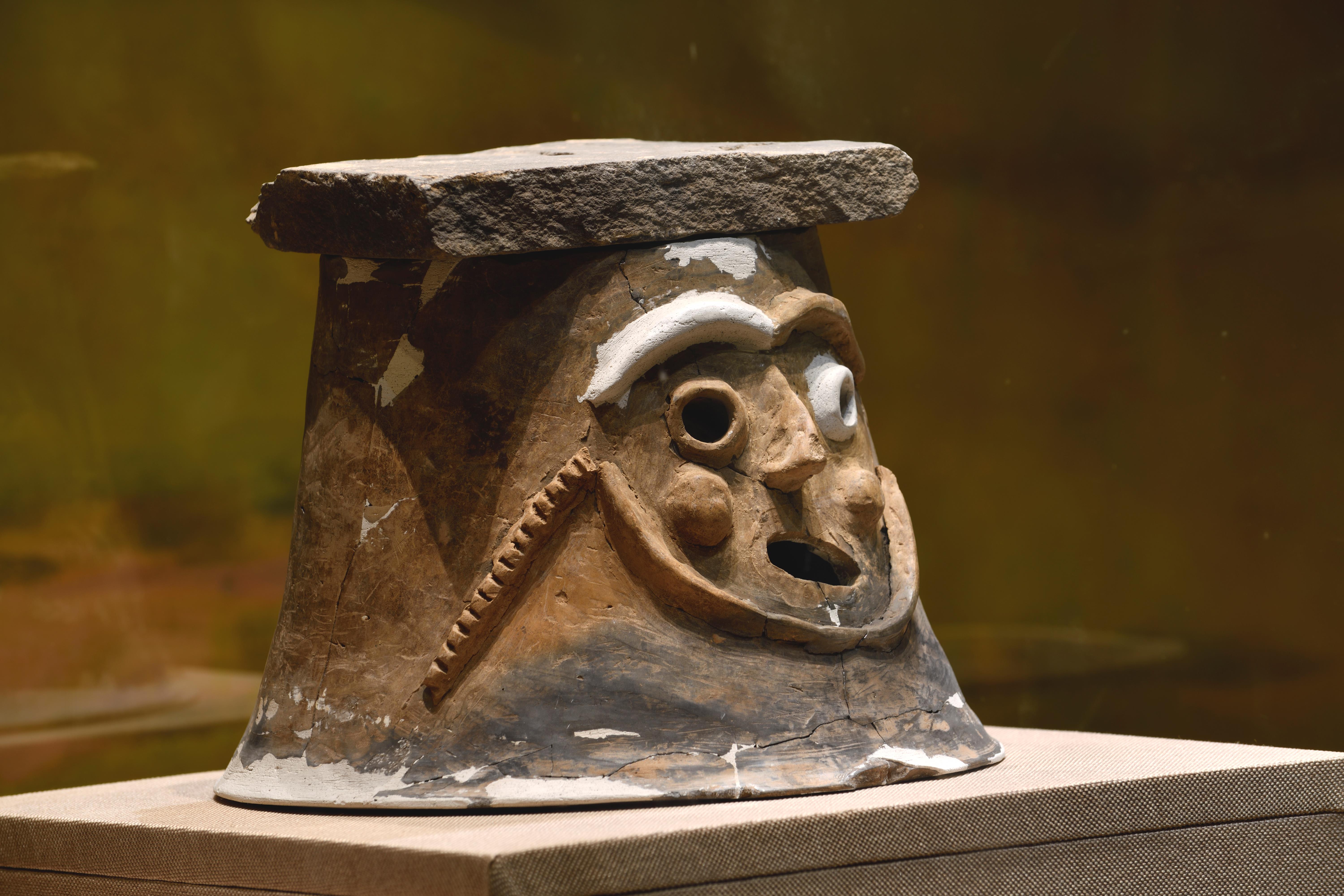 造型奇特的“陶人面筒形器”