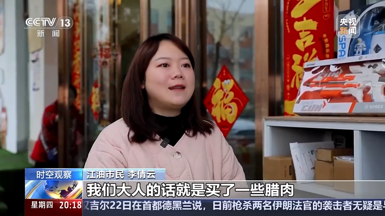 江油市民李倩云:我们大人的话就是买一些腊肉、坚果礼盒,小朋友就给他们买了玩具。小时候怕买不到年货,现在的话非常方便,还怕一不小心买多了。
