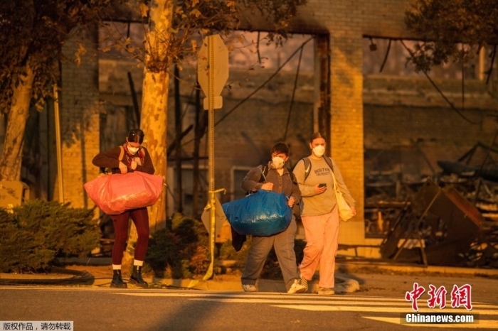 近日,美国加利福尼亚州洛杉矶多地山火持续肆虐,大批民众房屋被毁离家避难。图为当地时间1月9日,美国加州洛杉矶县阿尔塔迪纳,民众携带财物从家中撤离。