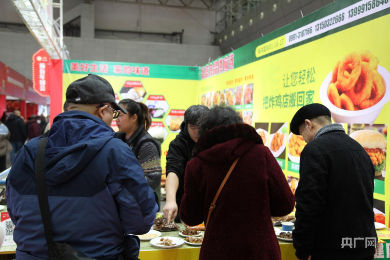 市民在美食展位品尝卤制品 (央广网记者 姜茸 摄)