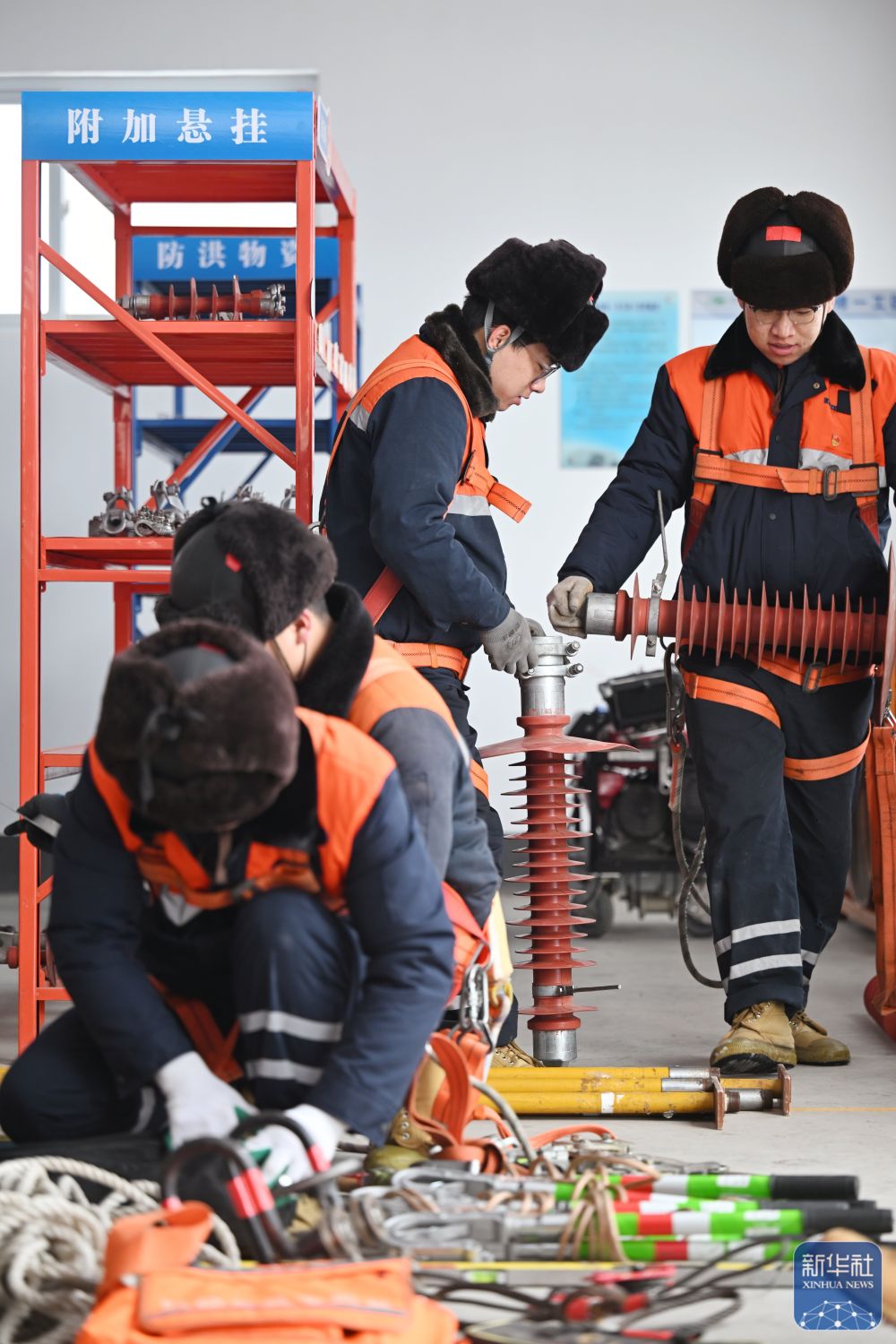 1月26日,在天津供电段接触网综合维修列基地,铁路职工在穿戴劳保用品。