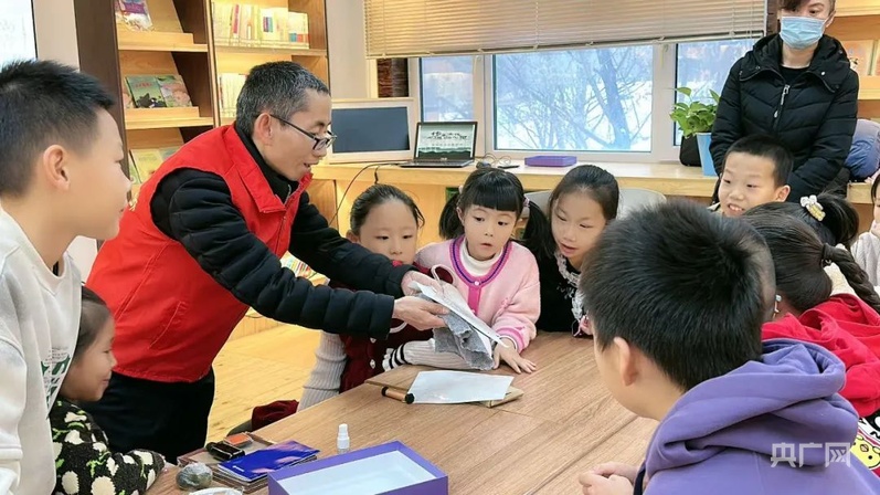 图书馆工作人员向小朋友讲解拓印的历史文化 (央广网发 周静静 摄)