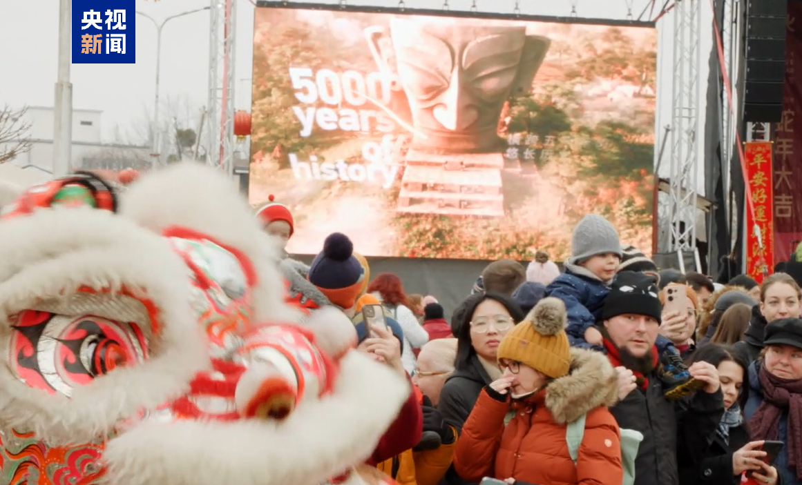 △中央广播电视总台蛇年春晚宣传片在匈牙利吸引大量游客驻足观看,在喜气洋洋的气氛和独特魅力的中华文化中感受中国春节的热烈氛围。