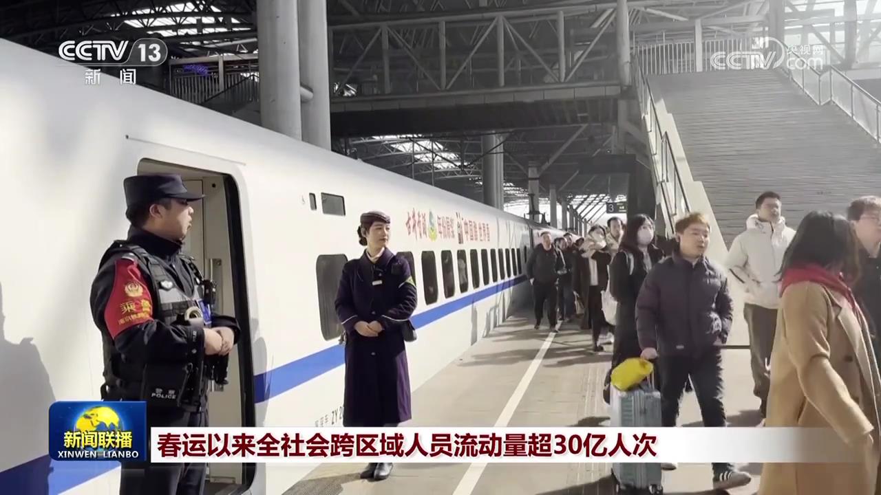 央视网消息(新闻联播):2025年综合运输春运工作专班数据显示,1月28日,全社会跨区域人员流动量预计19413万人次。春运启动以来,全社会跨区域人员流动量累计超30亿人次。