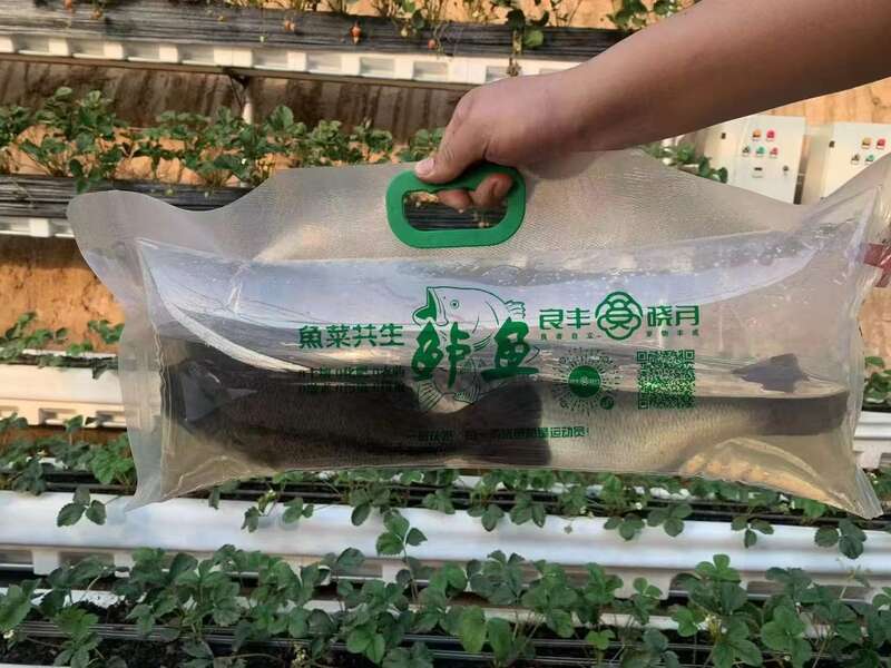 图.梁卓向记者展示包装好的鲈鱼。