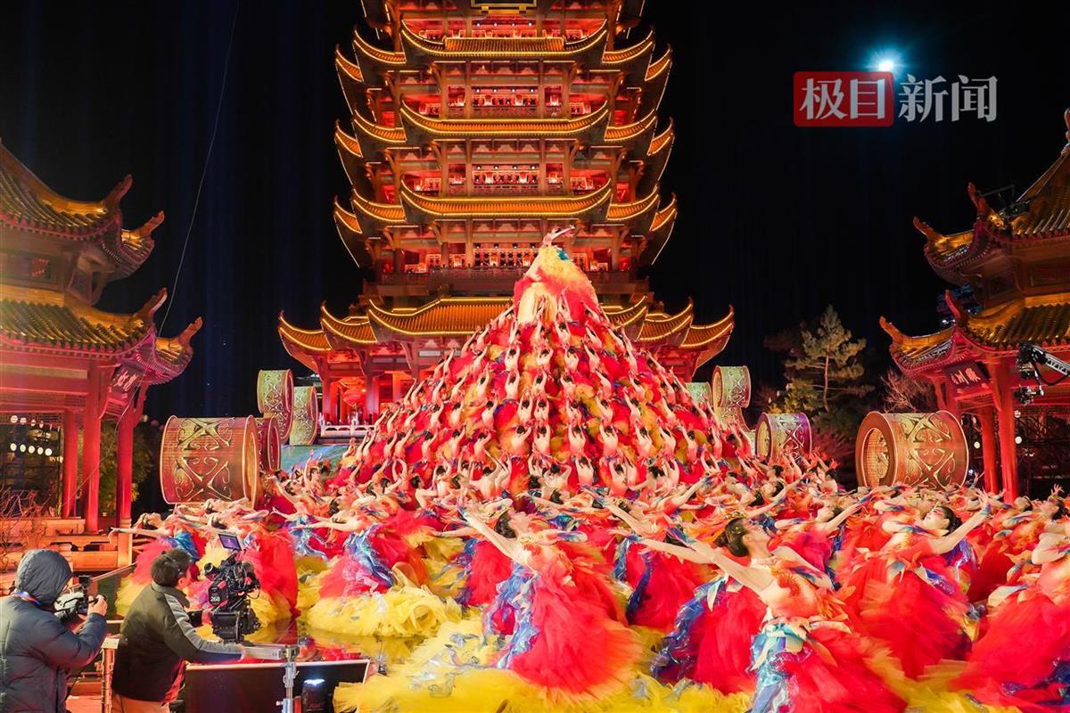一定有穿江而过的凤凰,它从宋代黄鹤楼的建模腾空而起,又幻化成非遗剪纸的喜庆红,它在黄鹤楼前涅槃而起,那优美的身姿,凝聚的是每一个武汉人的精气神。