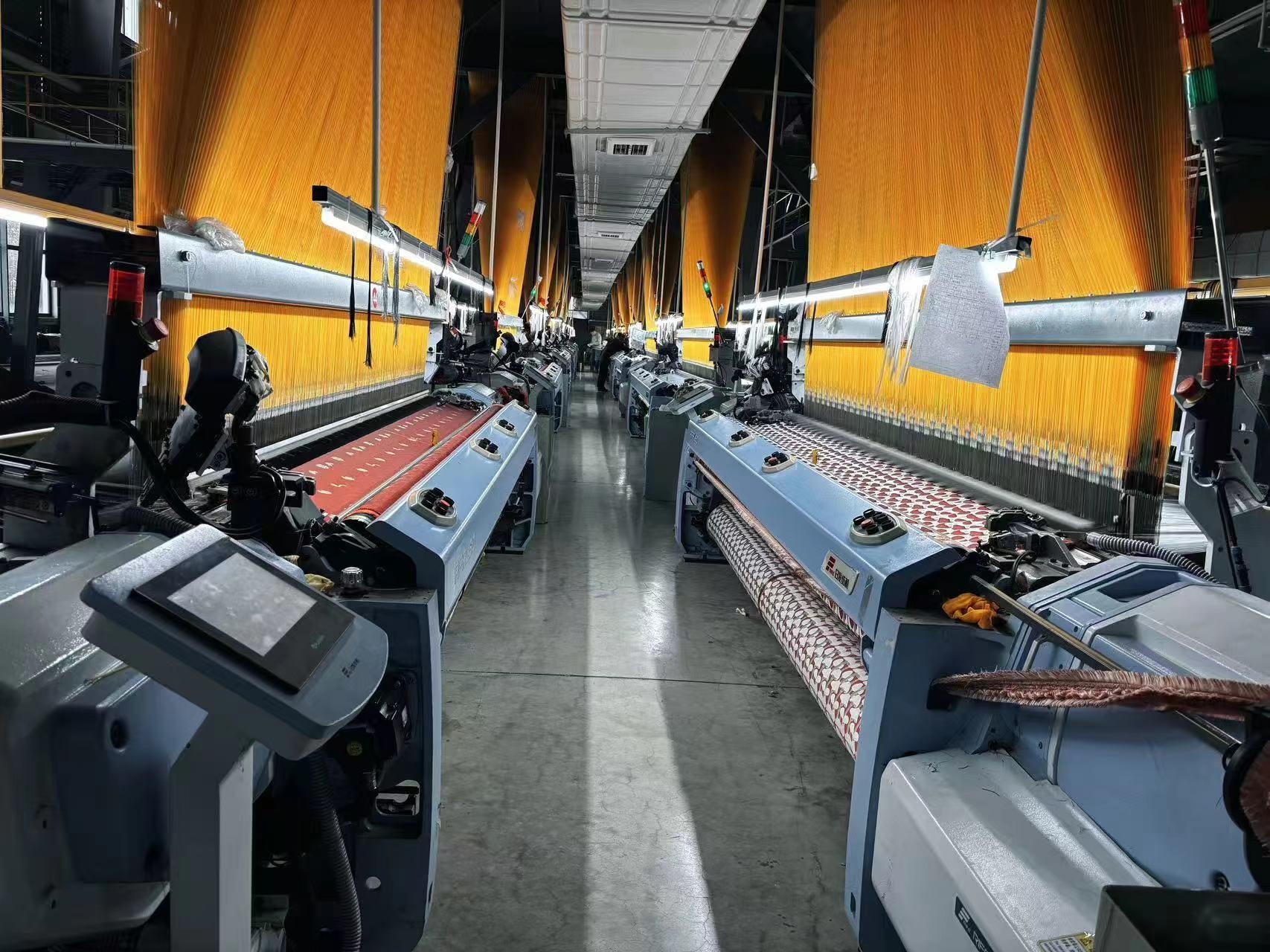 2025年1月8日,绍兴创丹纺织品有限公司生产车间内,机器正忙碌地生产着中式风格的面料。新华网发(许佳丹 摄)
