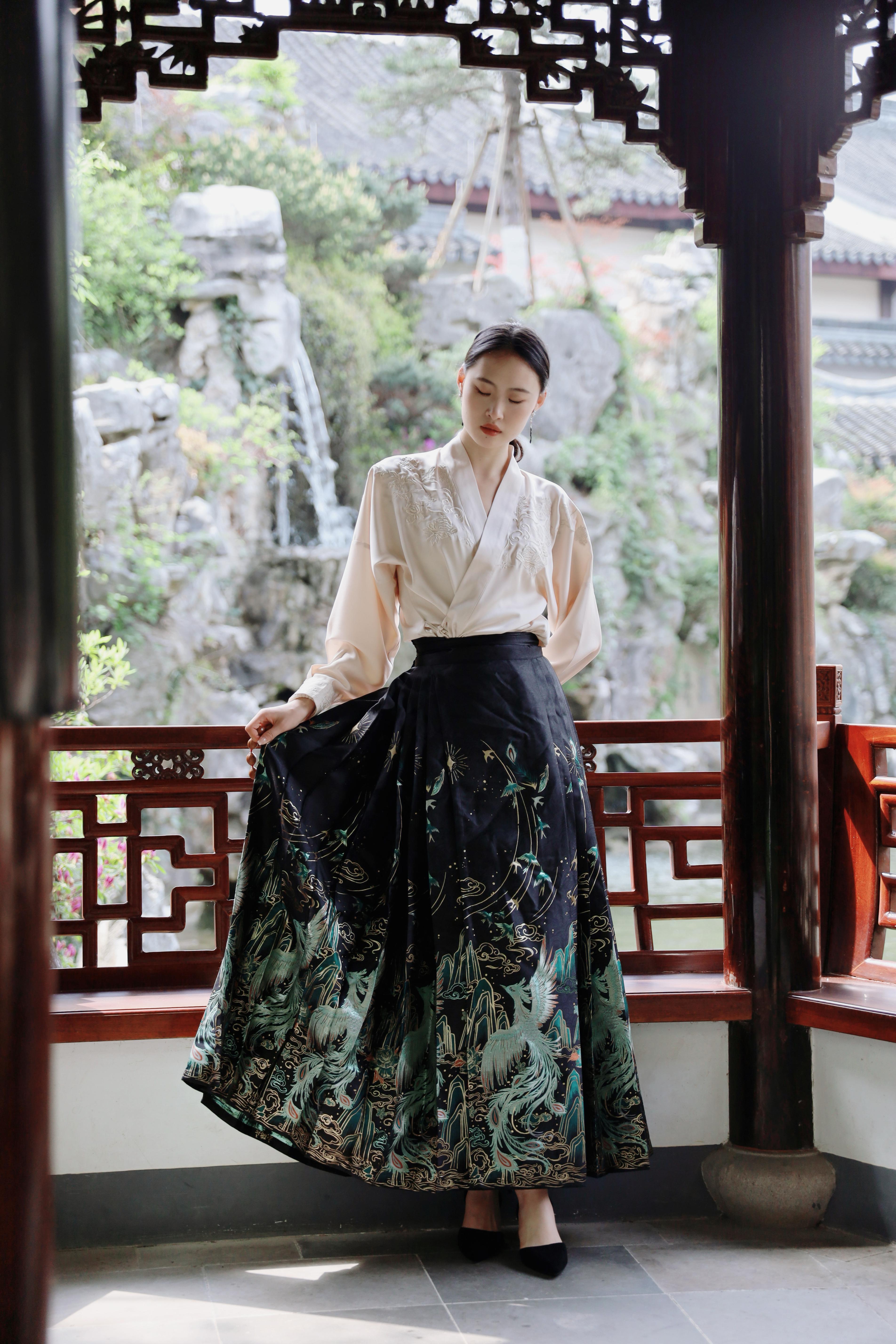 2024年3月29日,模特身穿马面裙进行拍摄。新华网发(许佳丹 摄)