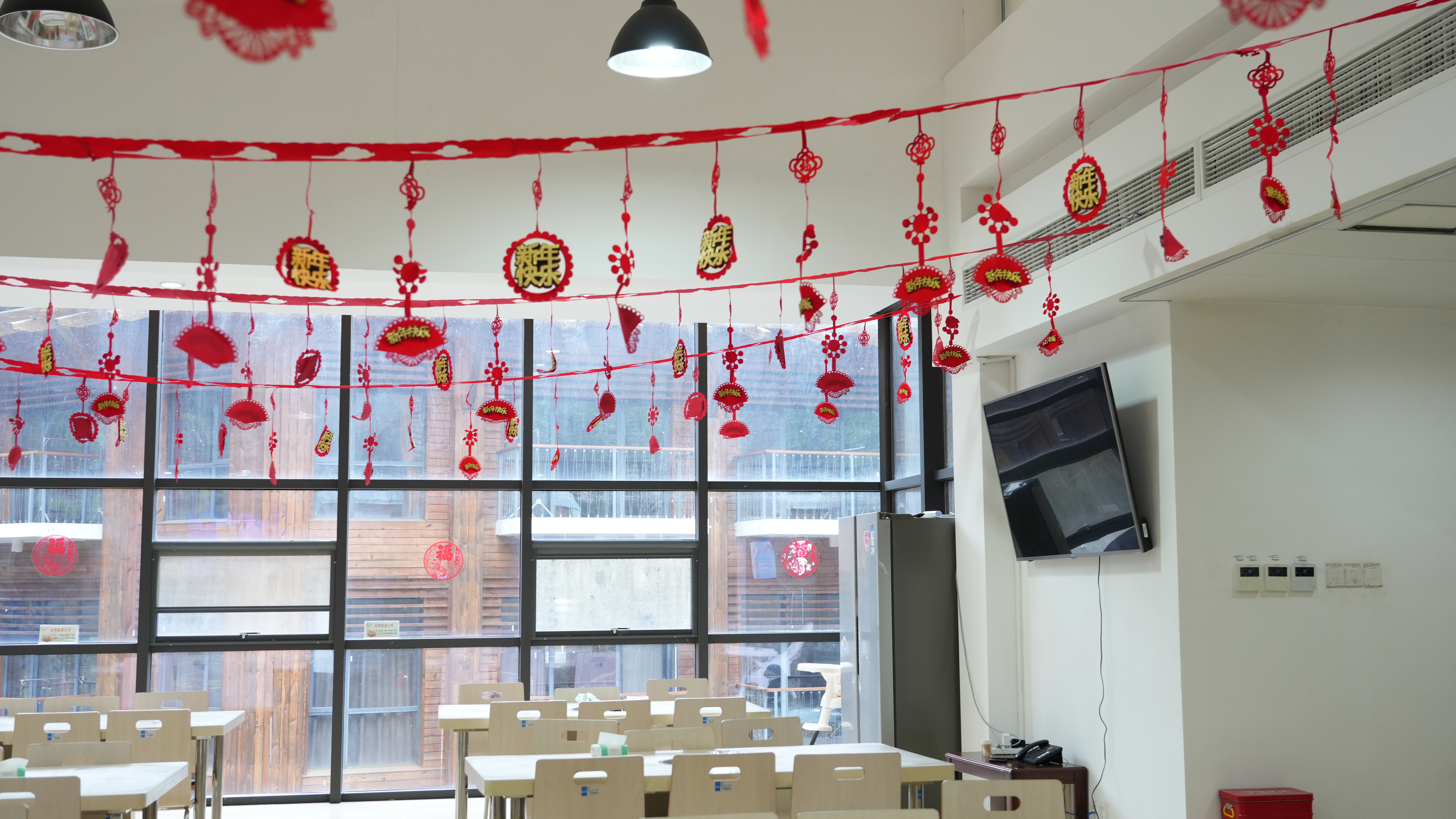 记者走进办公区,与平常不同的是,大门处高高挂起的红灯笼、走进办公区随处可见的小灯笼、窗花和偶尔传出孩童的笑声,这一切都让人确信春节近在咫尺。