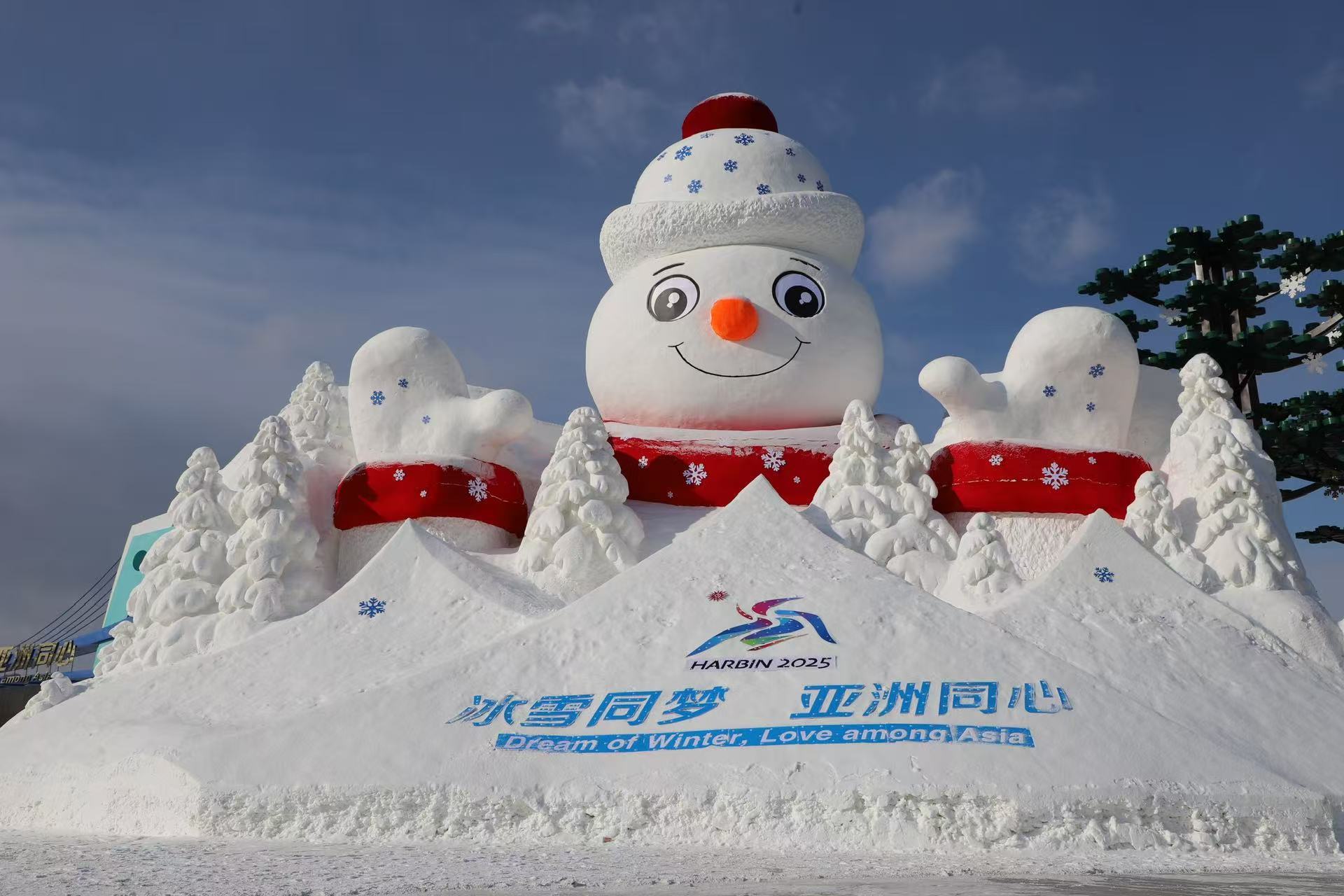 一座名为《惊喜的大雪人》的巨型雪雕作品