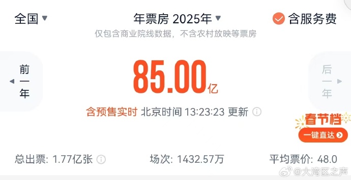2025年度电影总票房(含预售)突破85亿元!