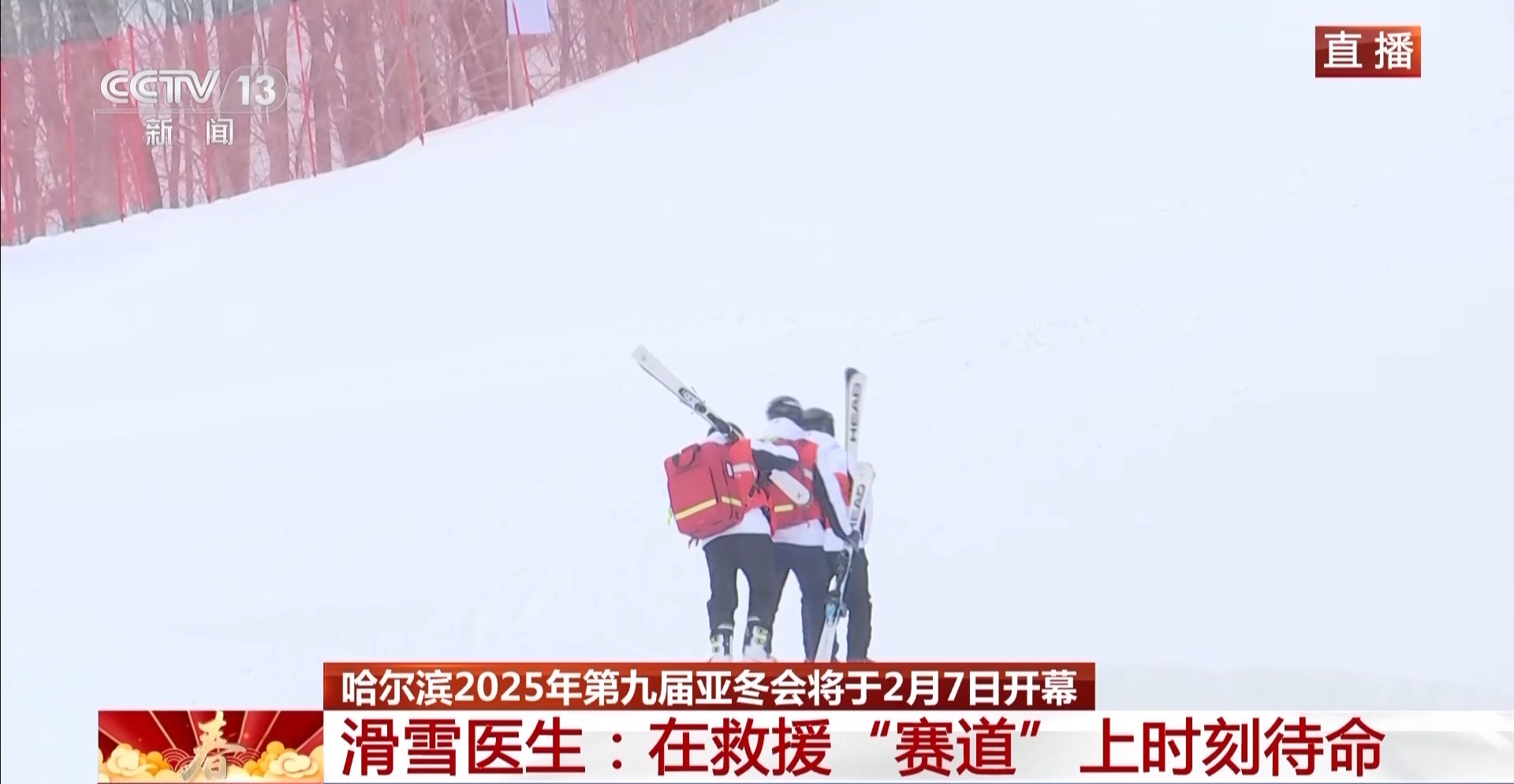 总台央视记者 黄达:滑雪医生要背着15公斤的紧急救援包,之前我们携带背囊跟着爬了50米,我羽绒服里面的衣服就已经湿透了。而滑雪医生告诉我,这是他们工作的日常。滑雪医生佩戴的头盔,携带的部分雪具都是中国制造。今年,很多中国制造要亮相亚冬赛场。