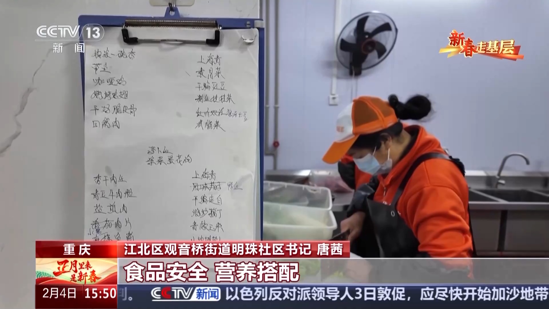 江北区观音桥街道明珠社区书记 唐茜:要解决一个能够办食堂的一个地方,这是一个硬件上的问题。第二个就是谁来办,首先我们提出的第一个就是要能够满足咱们这边老人对高品质生活的要求。食品安全、营养搭配、健康我们要排在第一。既然要做我们就要做得好,要做到老人的心坎上去。