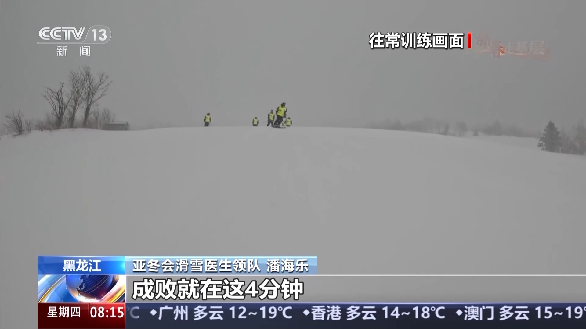 亚冬会滑雪医生领队 潘海乐:经过一年的非常刻苦的训练,我觉得现在应该都具备了真正赛场保障的能力,但是还需要真正的赛场大考来把成色再验一验,就是我们怎么能够黄金4分钟处理好,成败就在这4分钟。