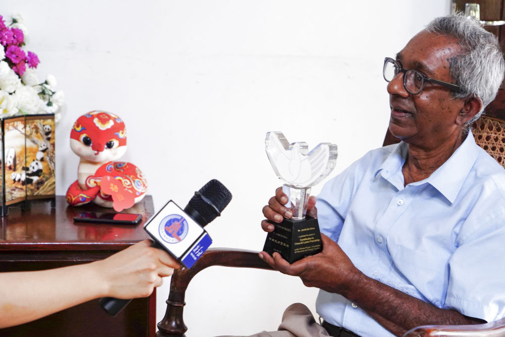 1月30日,在斯里兰卡首都科伦坡,斯里兰卡中国协会主席吉尼斯·德席尔瓦接受新华社记者采访。