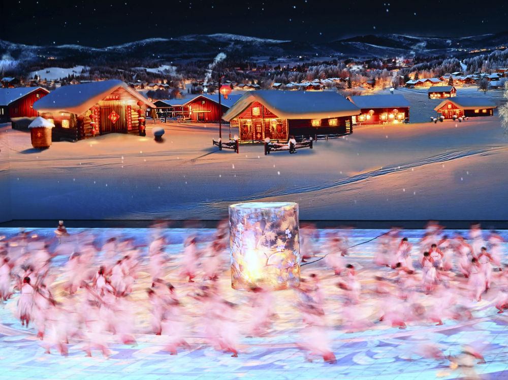 亚冬会开幕式总导演沙晓岚介绍,开幕式从策划到最终呈现,不到一年;由于场馆为在会展功能基础上做的改造,所以棚顶不能做悬吊,演出地面不能升降,但通过裸眼3D等技术,依然为现场约8000名观众呈现了一场精彩的演出。
