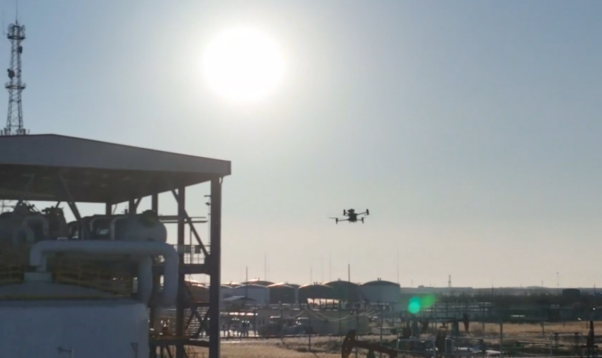 在辽河油田欢喜岭采油厂,无人机正按照预定路线巡检电热熔盐储能注汽试验站。张子涵摄