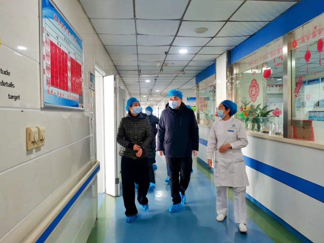 △郝军英到医院看望长期滞留人员。