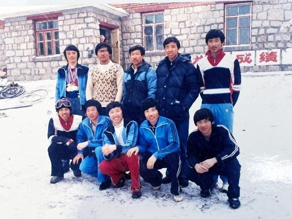 滑雪教练王永涛(第一排左一)于上世纪八十年代初在亚布力训练。王永涛供图