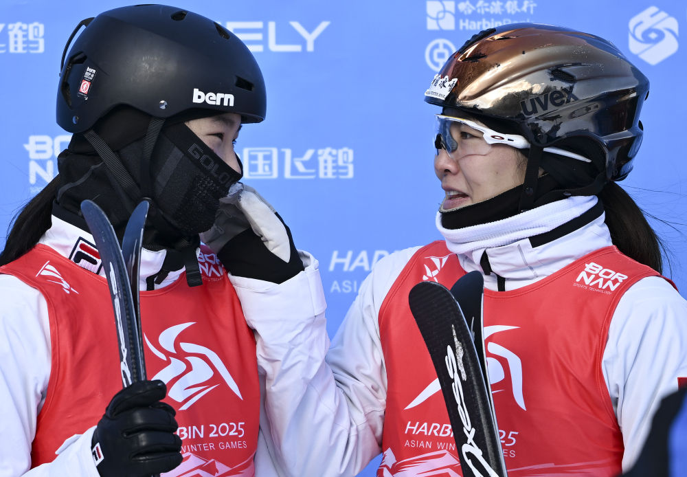 自由式滑雪——中国选手徐梦桃(右)与陈雪铮包揽女子个人空中技巧冠亚军