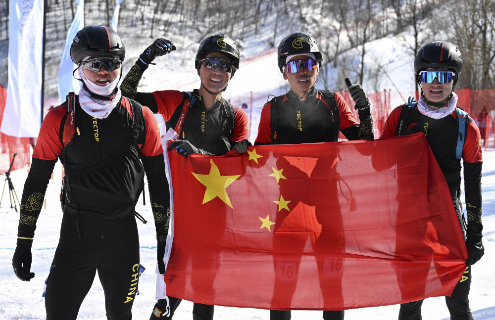 滑雪登山——女子短距离:中国选手包揽前四名(左一至左四:次旦玉珍、于婧萱、索朗曲珍、纪璐璐)