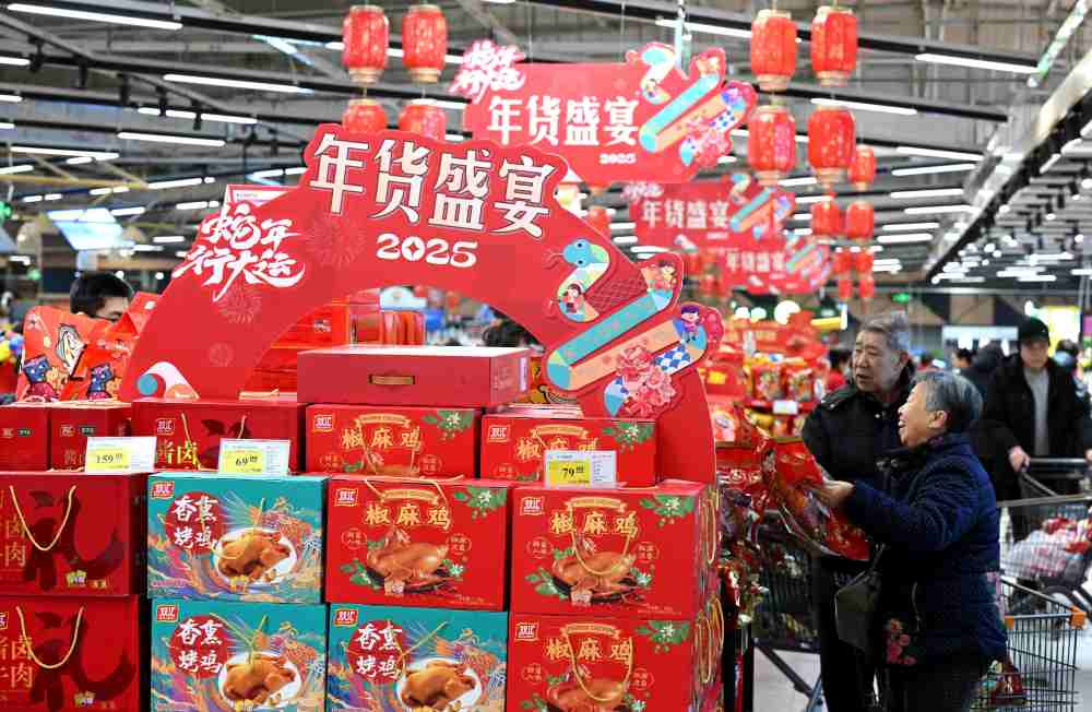 2025年1月24日,顾客在河北省石家庄市新华区北国超市中环店选购年货。新华社发(陈其保 摄)