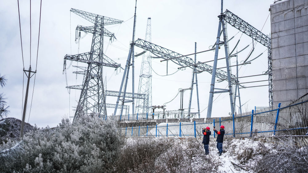 2025年1月26日,南方电网贵州六盘水钟山供电局工作人员对辖区内线路进行覆冰观测。新华社记者 陶亮 摄