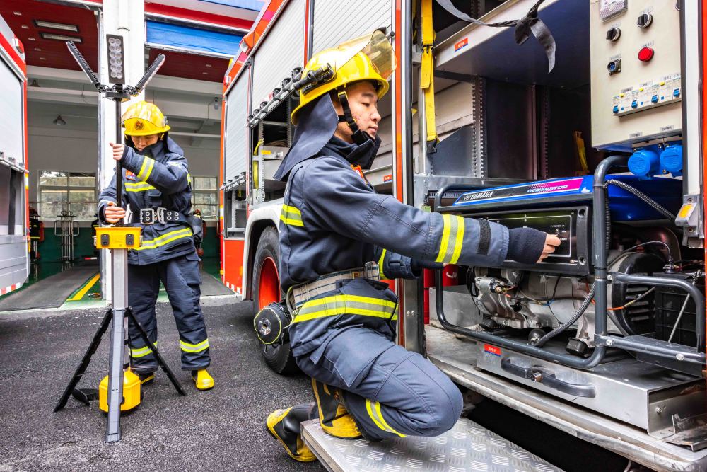 2025年1月29日,消防救援人员在贵州省安顺经济技术开发区消防救援大队检查装备。新华社发(陈熙 摄)