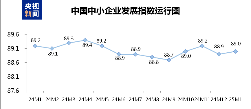 中国中小企业协会今天(11日)发布,1月中国中小企业发展指数为89.0,相比去年12月上升0.1点。