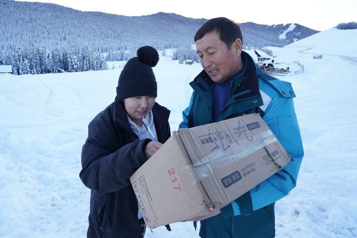 在禾木乡,别克也见证着网购的飞速发展。他回忆,刚开始给禾木送邮件时,大多是特快专递、文件、信件和党报党刊。随着网络时代的到来,邮件的种类和数量不断增加,从冬衣、鞋子、腰带到大彩电、洗衣机、滑雪板,甚至面粉、清油、大米等也逐渐成为网购的常见物品。