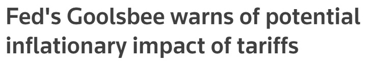 连日来,芝加哥联邦储备银行行长奥斯坦·古尔斯比等多位美联储官员已纷纷表示,美国对主要贸易伙伴加征关税可能引发美国的长期通胀,从而阻碍美联储抑制通胀的政策努力。