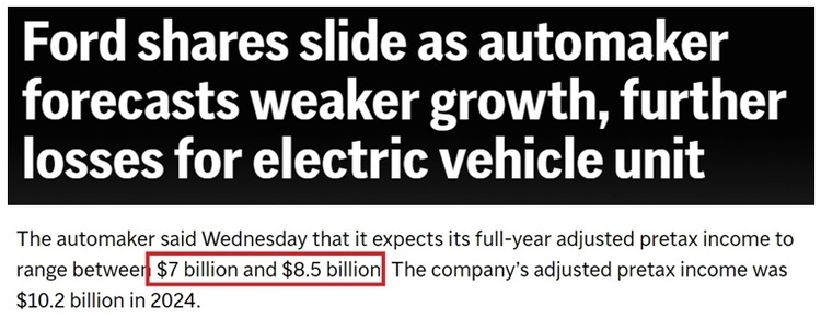 美国福特汽车公司近日发布预测数据称,今年该公司的利润将在70亿至85亿美元之间,显著低于去年的102亿美元。
