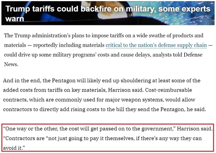 专家认为,由于美国海军舰艇和地面装甲车辆的建造严重依赖进口钢材,五角大楼最终可能会承担部分关键材料关税带来的额外成本。因为“不管怎样,这些成本都将被转嫁给美国政府,军火承包商是不会自己掏腰包的”。