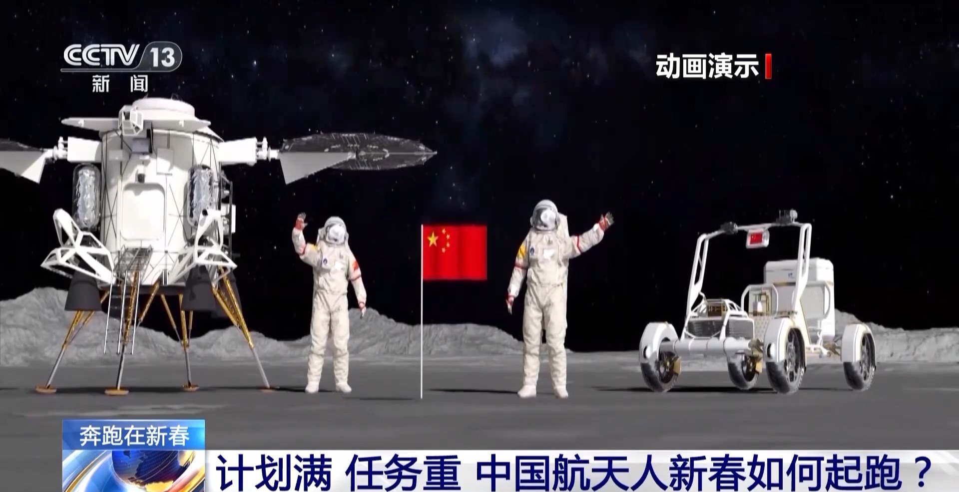 2月12日,“望宇”登月服和“探索”载人月球车也和大家见面了。按计划,中国将在2030年前实现载人登陆月球,完成“登、巡、采、研、回”等多重任务,形成独立自主的载人月球探测能力。