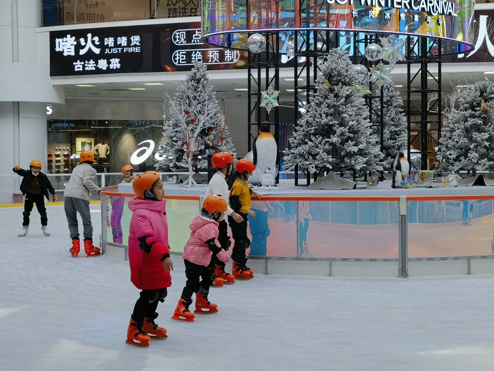 位于上海市闵行区的华润上海万象城冰场十分热闹,孩子们在这里练习冰球、花样滑冰。冰场运营方北京世纪星冰雪体育文化发展有限公司上海分公司有关负责人介绍,目前冰场日均接待消费者350人次,其中约80%是前来训练的青少年学员。冰场新增幼儿园体验活动,深受儿童及家长的欢迎。