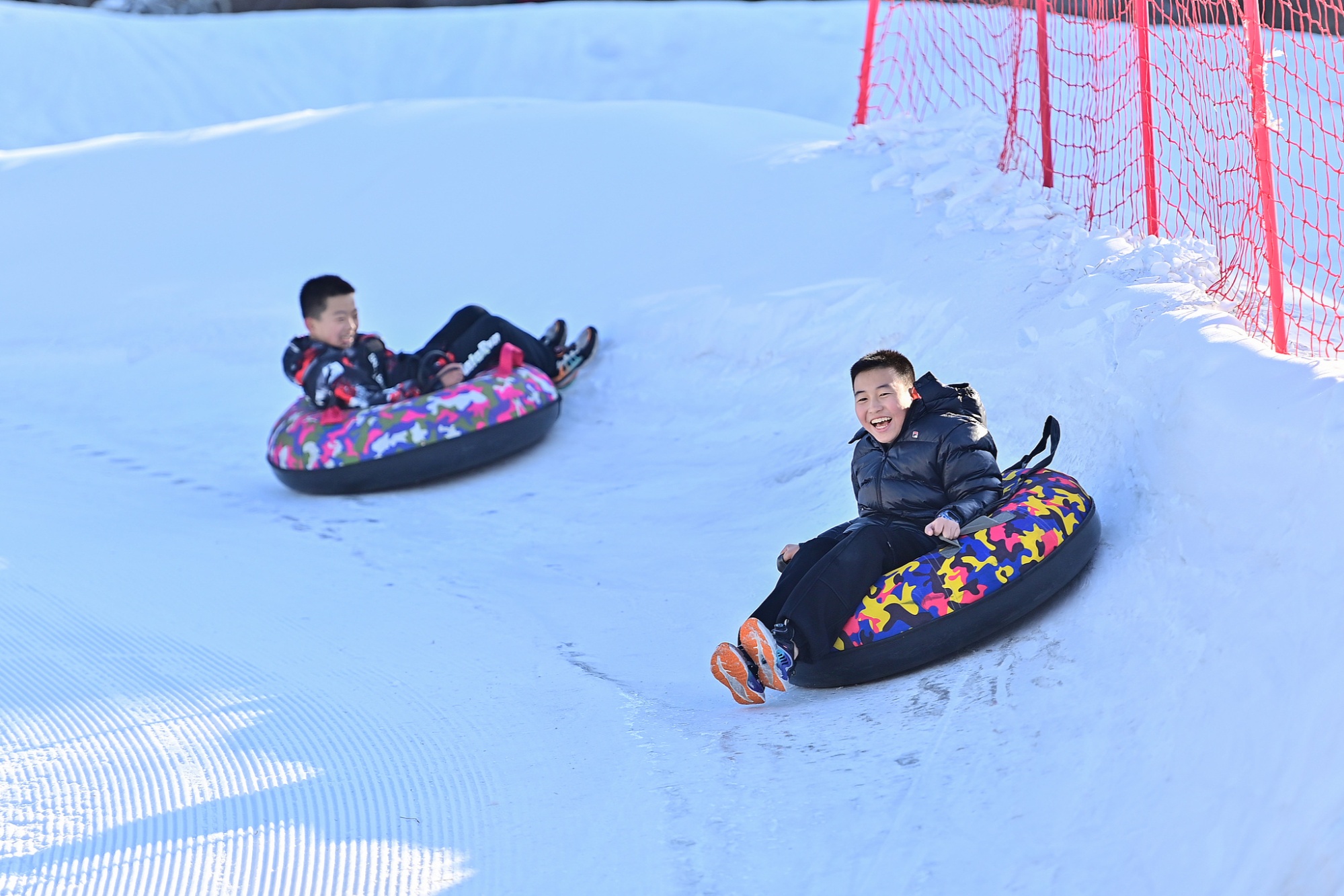 冰雪季带动多地“热消费”,游客在滑雪场体验雪圈项目