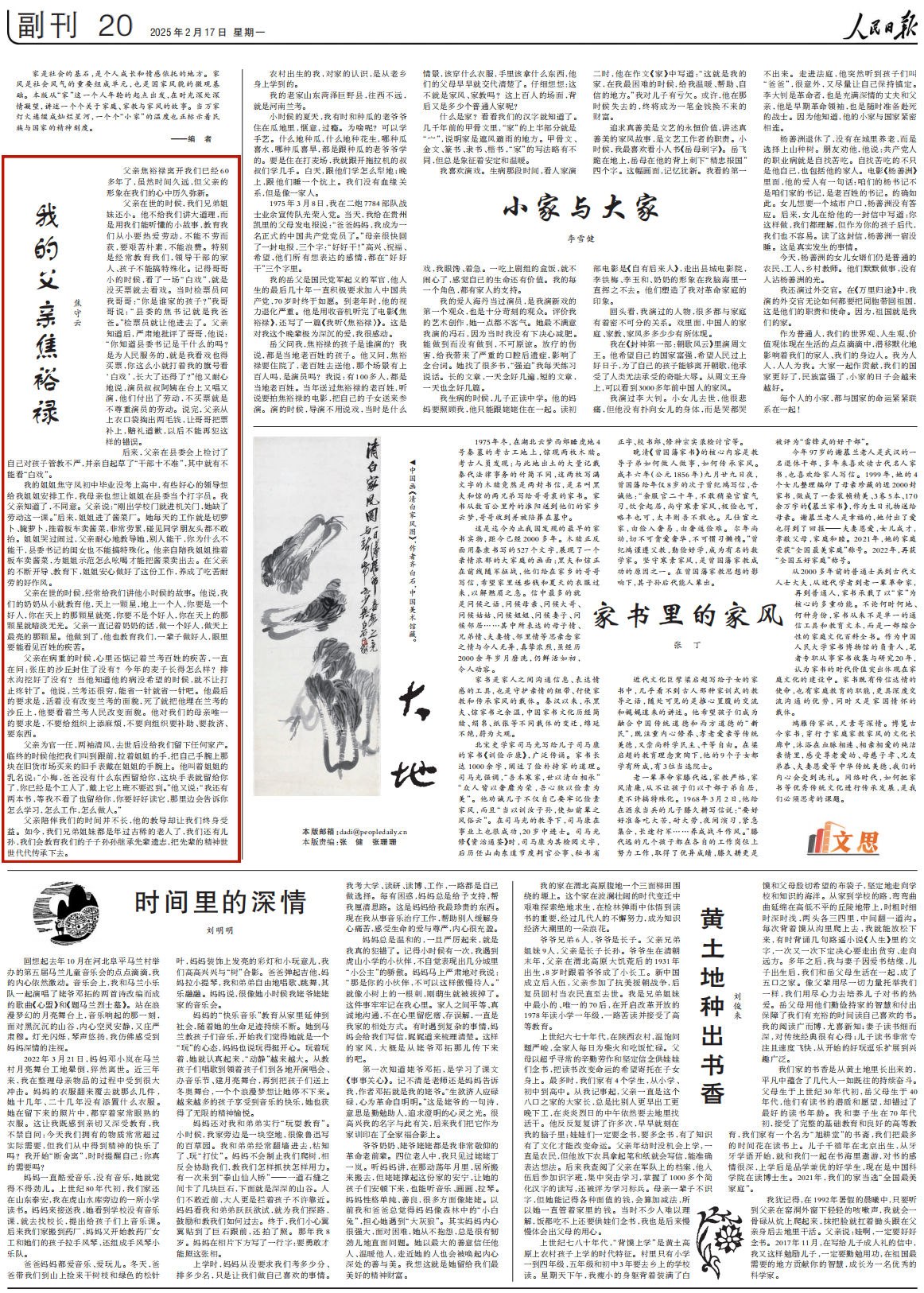 父亲在世的时候,经常给我们讲他小时候的故事。他说,我们的奶奶从小就教育他,天上一颗星,地上一个人,你要是一个好人,你在天上的那颗星就亮,你要不是个好人,你在天上的那颗星就暗淡无光。父亲一直记着奶奶的话,做一个好人,做天上最亮的那颗星。他做到了,他也教育我们,一辈子做好人,眼里要能看见百姓的疾苦。