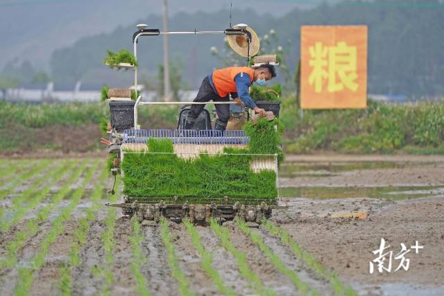佛山高明,农机所过之处,青青秧苗遍地。南方+记者 戴嘉信 王蓓蓓 摄