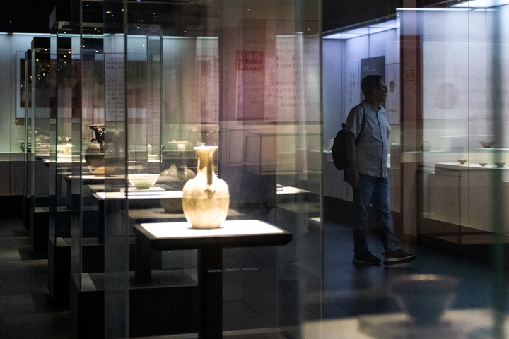 2023年9月9日,游客在位于赤壁市羊楼洞古镇的中国青砖茶博物馆参观。新华社记者 杜子璇 摄