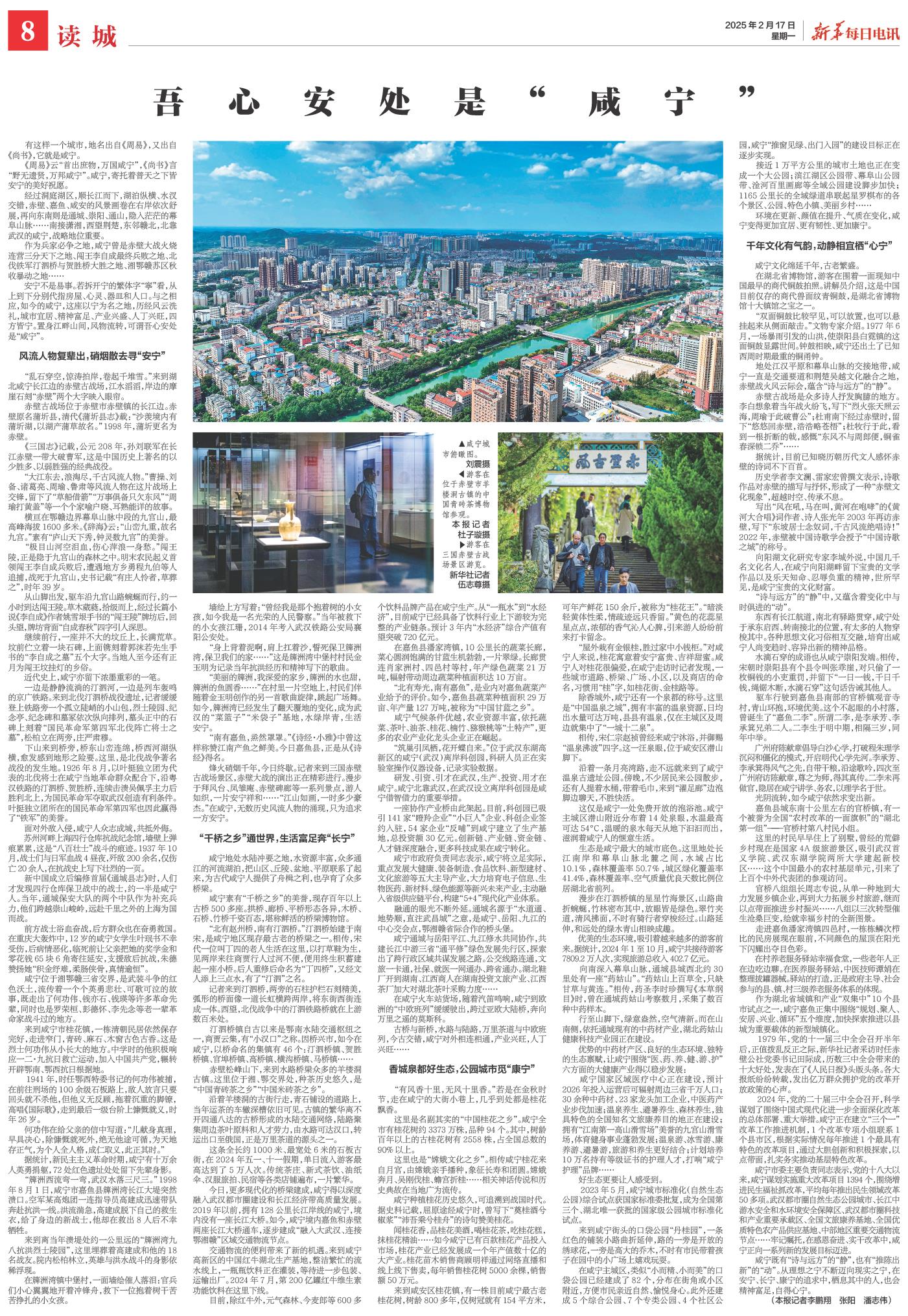 安宁不是易事。若拆开宁的繁体字“寧”看,从上到下分别代指房屋、心灵、器皿和人口。与之相应,如今的咸宁,这座以宁为名之地,历经风云洗礼,城市宜居、精神富足、产业兴盛、人丁兴旺,四方皆宁。置身江畔山间,风物流转,可谓吾心安处是“咸宁”。